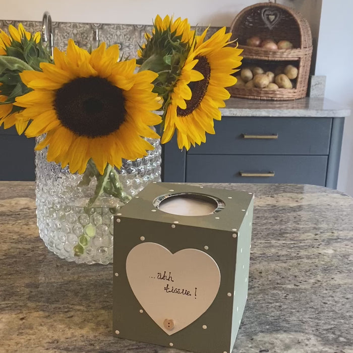 Personalised Hand-Painted Wooden Tissue Box – Custom Wooden Tissue Holder with Polka Dots – Handmade Home Décor Gift - Brown with cream spots / £20