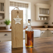 Personalised Wooden Wine Box – Hand Finished Natural Wood Gift with Cream Star & Whimsical Handwritten Text - Oak